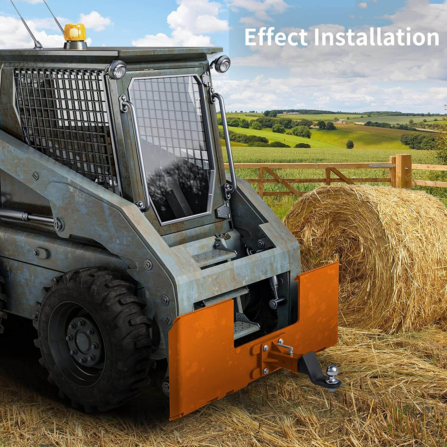 This Skid Steer Adapter Plate is made from grade 50 heavy-duty steel that’s highly sturdy with 3000 lbs pulling capacity; the Surface is powder coated and painted to withstand rust and harsh environments to extend the lifespan.